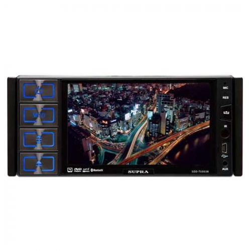 SDD-T5003B - CD/DVD - автомагнитола с выходом AUX на передней панели. Краткие технические характеристики: 4x50 Вт, цветной сенсорный дисплей, усилитель, эквалайзер, FM/AM радио, CD-R, CD-RW, DVD-R, DVD-RW, MP3, WMA, MPEG4, JPEG, USB, слот для карт памяти SD/MMC, пульт ДУ, ТВ-тюнер, Bluetooth, поддержка профиля A2DP.